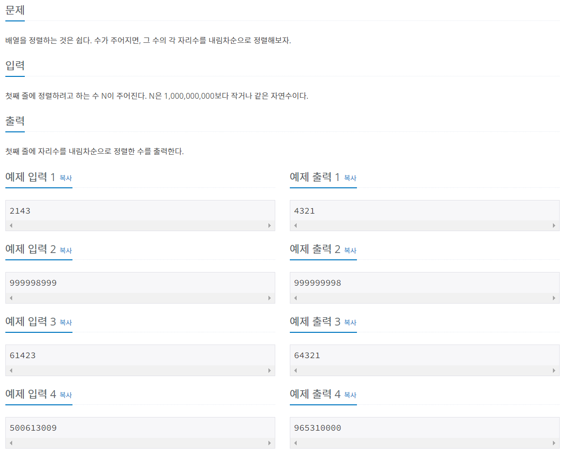이 자리수들을 내림차순으로 정렬하여 출력하자.