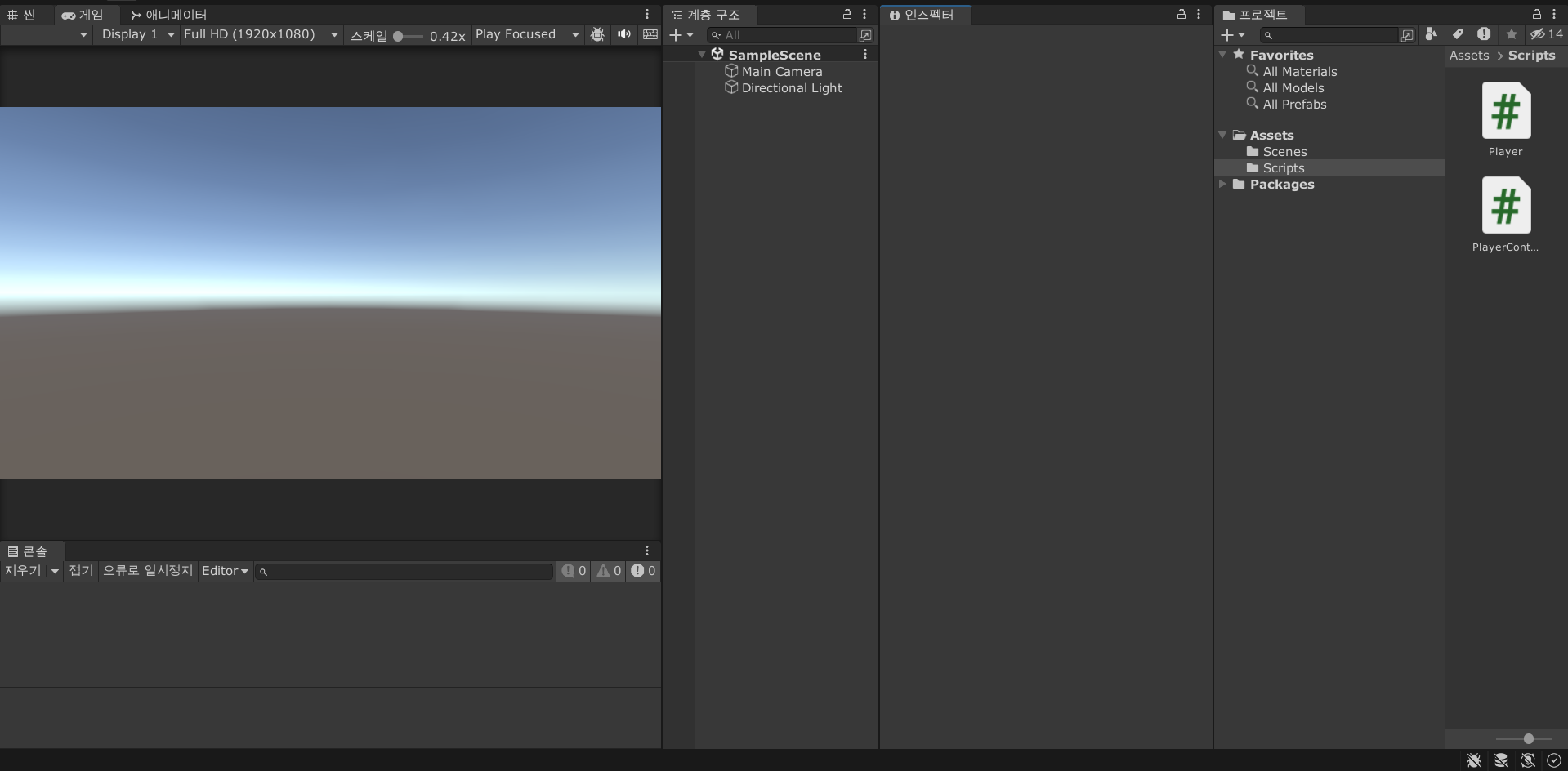 생성했다면 인스펙터에 Player 스크립트를 마우스로 끌어와 스크립트를 추가하자.