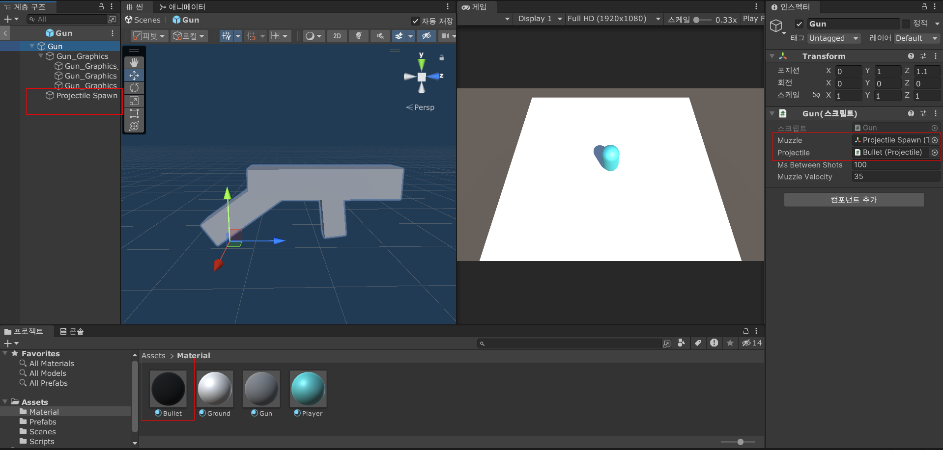 Gun 스크립트도 작성하자.
