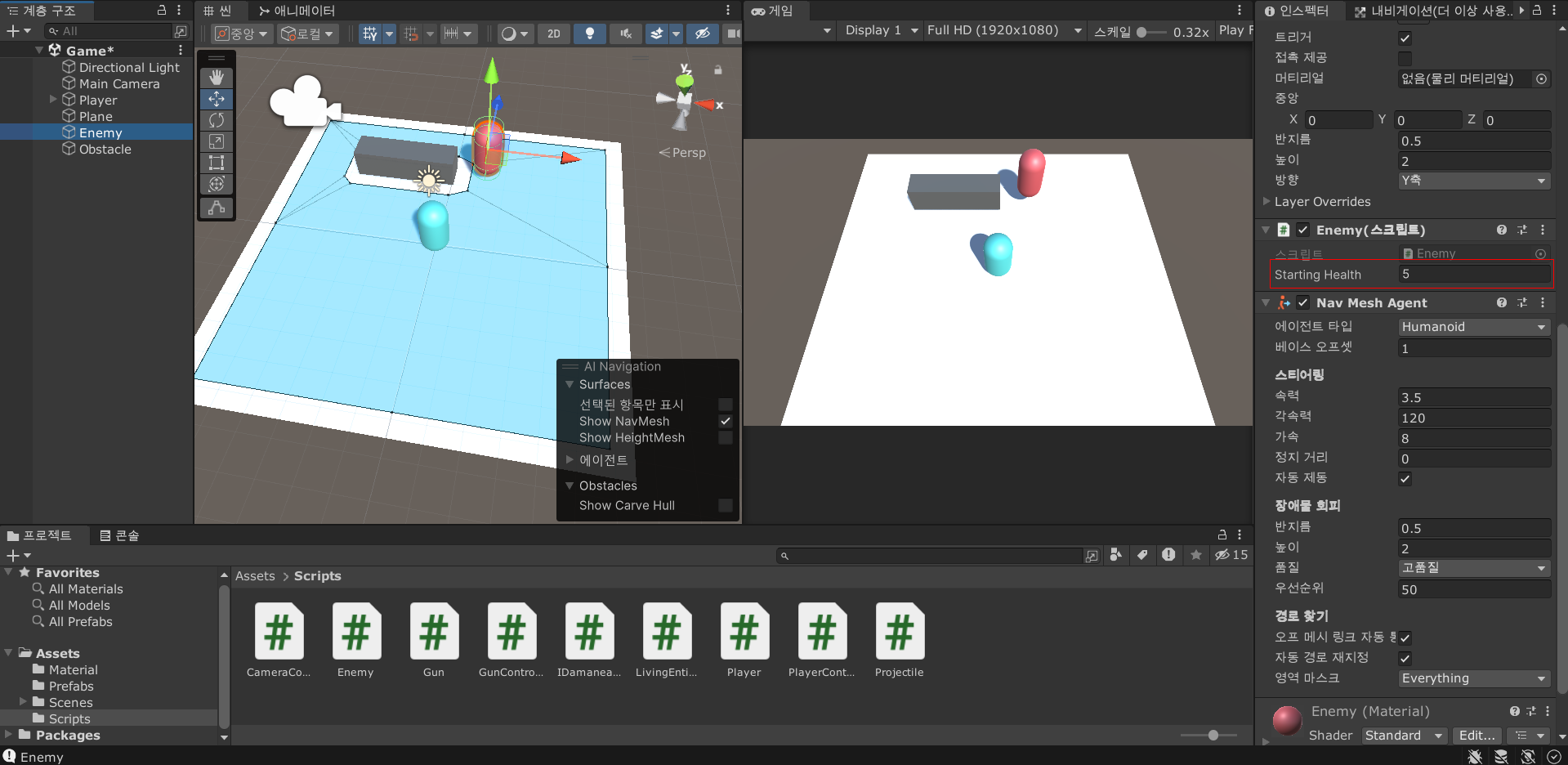 Player 스크립트와 Enemy 스크립트를 수정해주자.