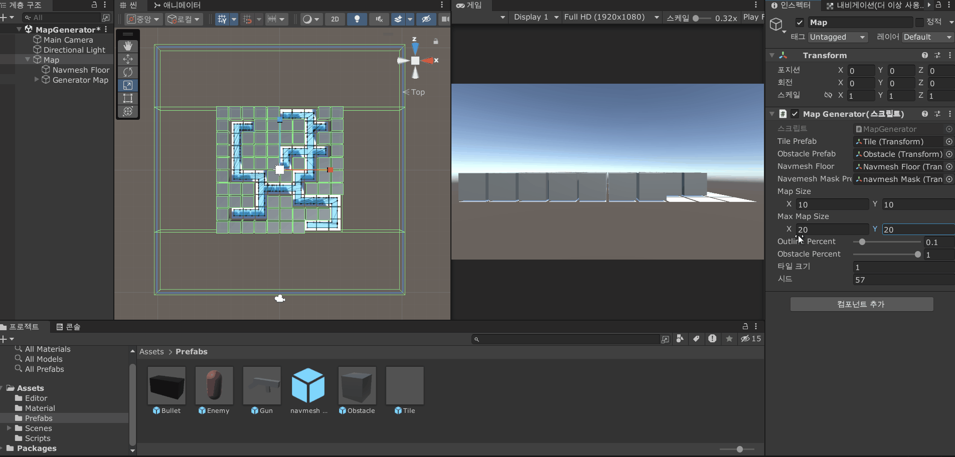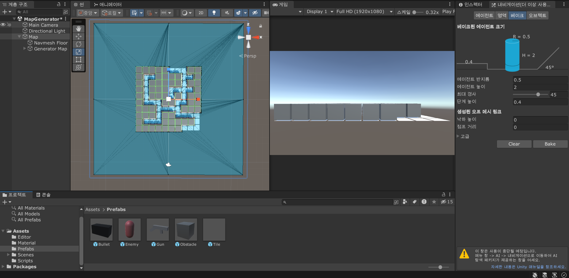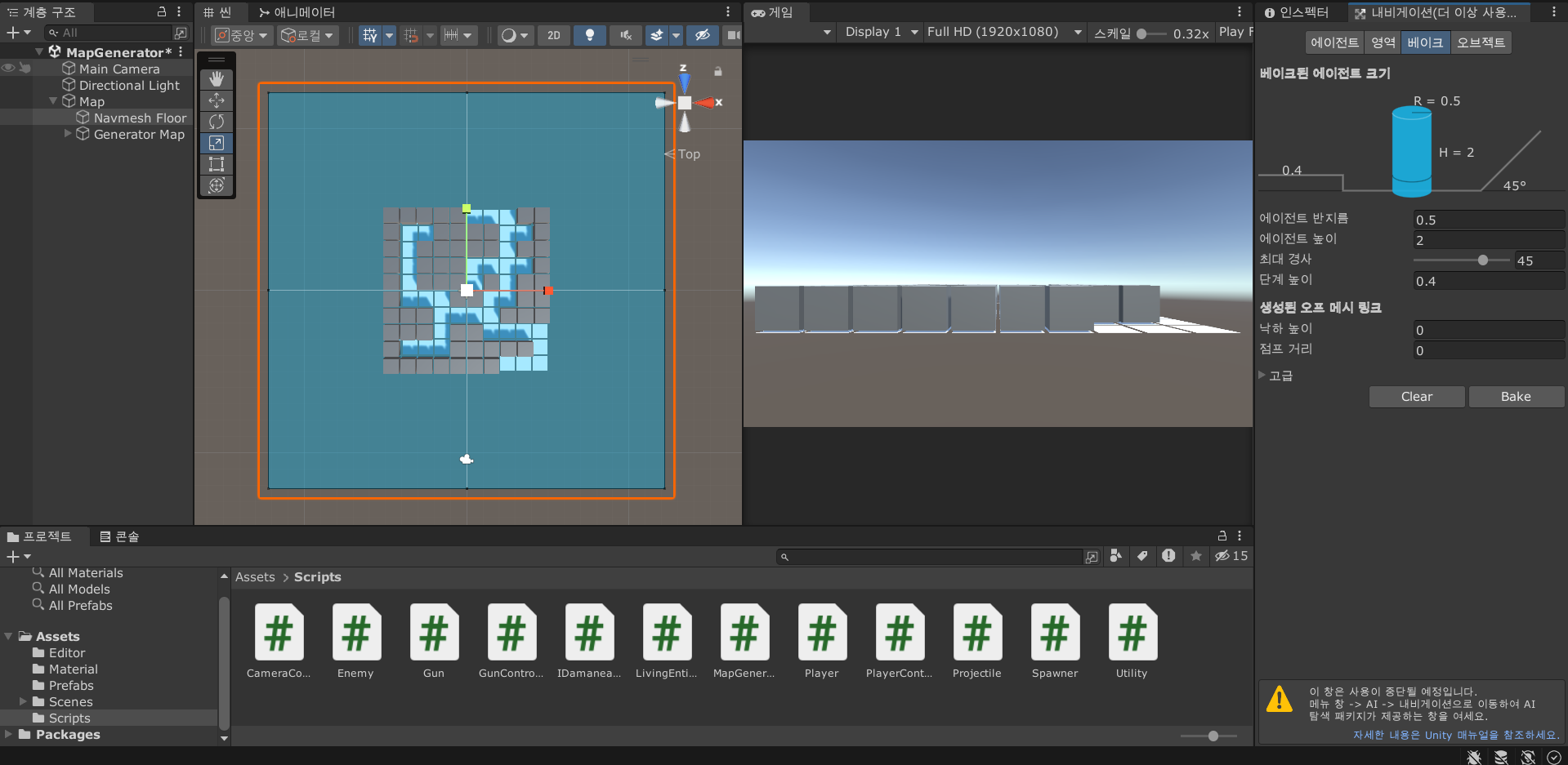 이번 강의에서는 지금까지 만들어놓은 맵 생성기를 게임(내브메쉬)에 적용해본다.