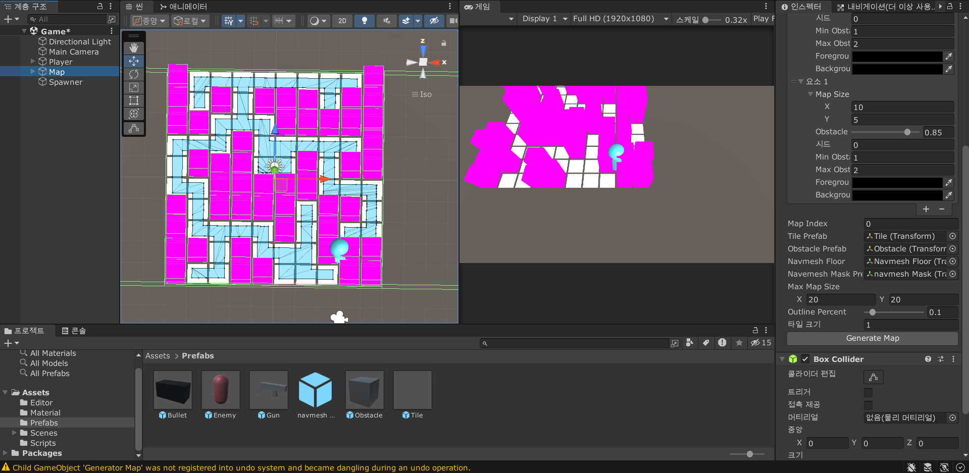 스크립트에서 정수를 사용하면서 문제가 하나 생겼는데, 맵 크기를 홀수로 지정하면 내비메쉬 마스크