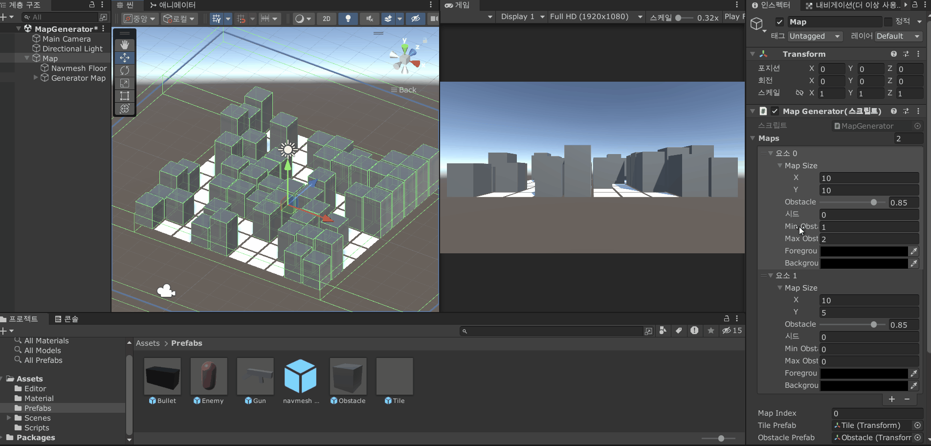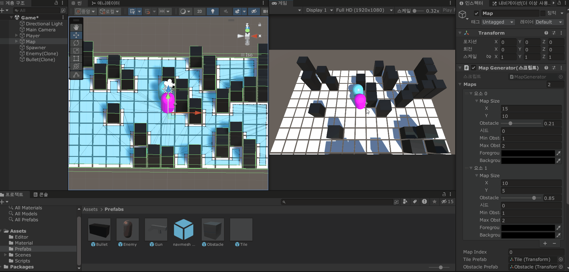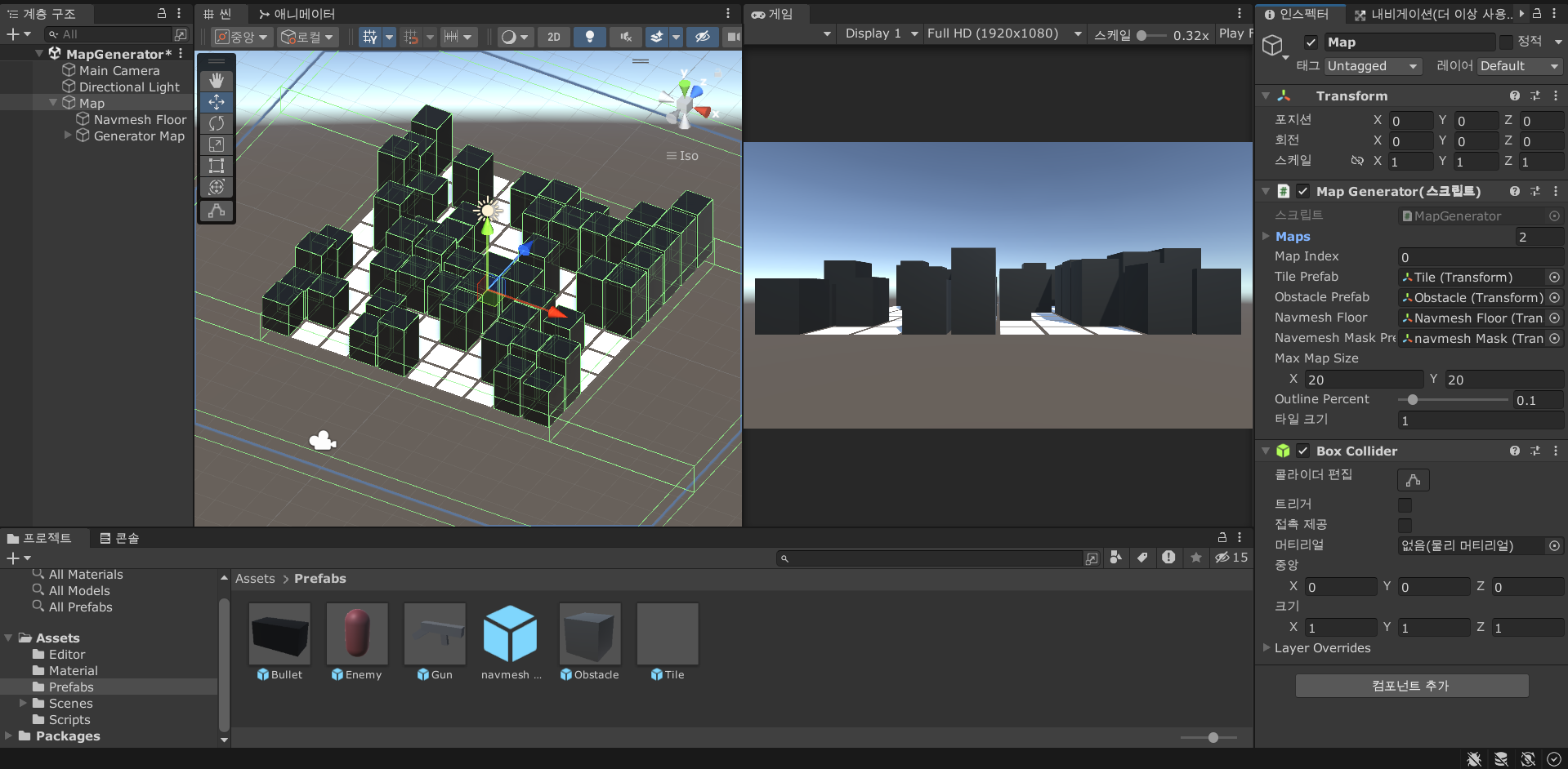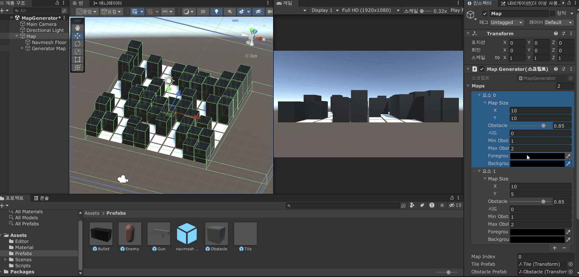 그리고 지금까지 만든 맵 생성기를 게임에 적용하기 위해