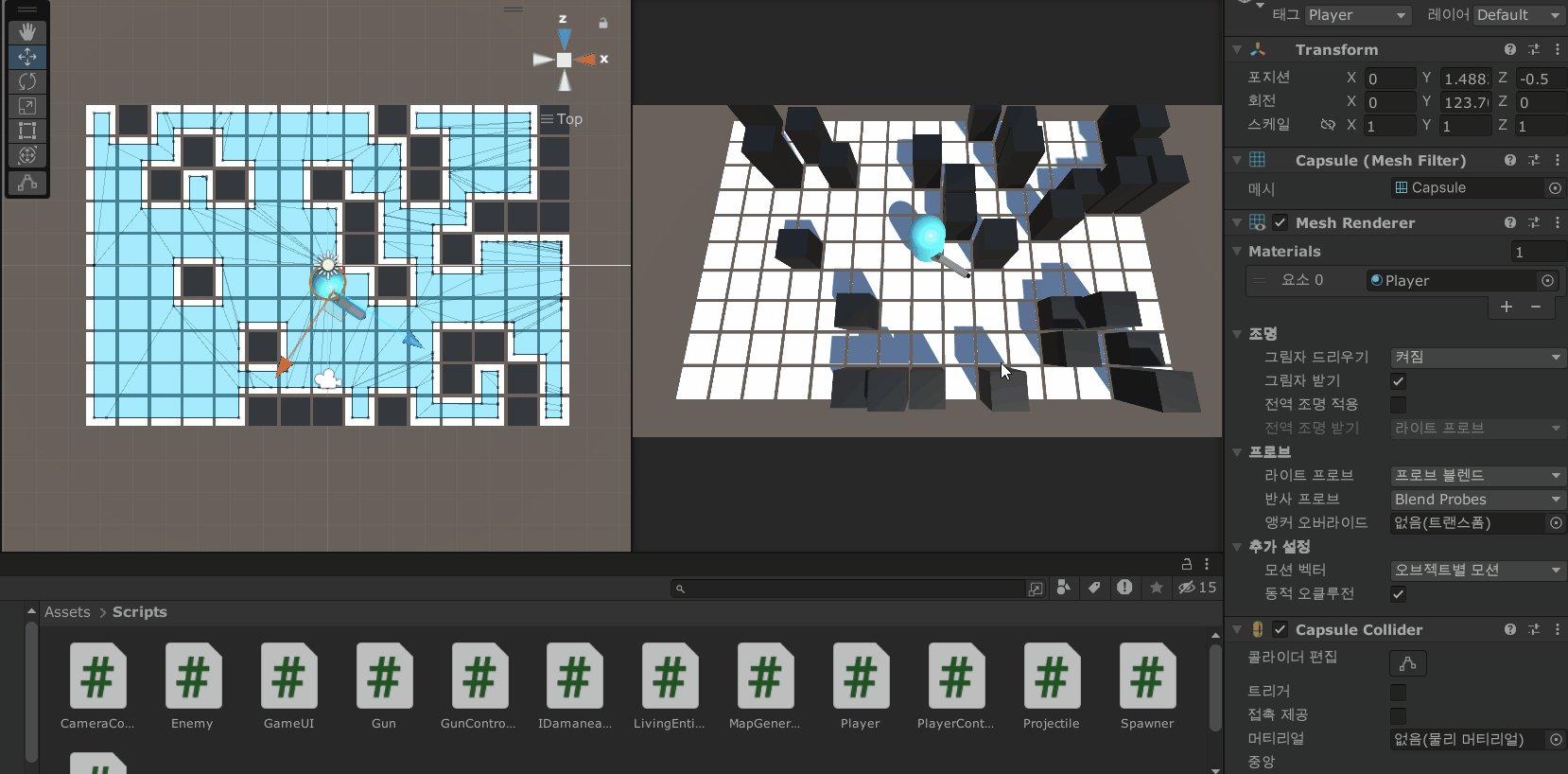 map = FindObjectOfType<MapGenerator>(); // 맵 생성기