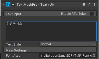 TMP 에서 사용이 가능한 글꼴 에셋으로 바꿔줘야 한다.