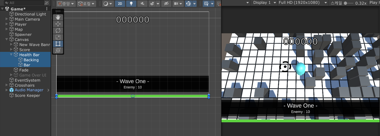 이번에는 플레이어 캐릭터의 체력을 보여주기 위해 화면 아래에 체력바를 추가하자.