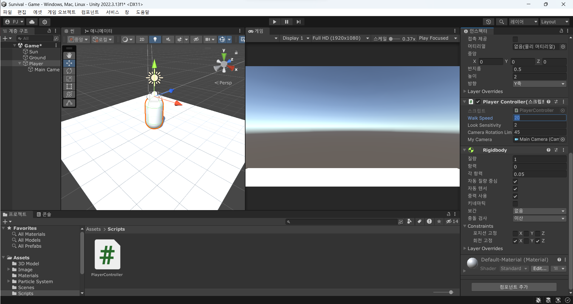 이제 플레이어가 움직일 수 있도록 스크립트를 작성해보자.