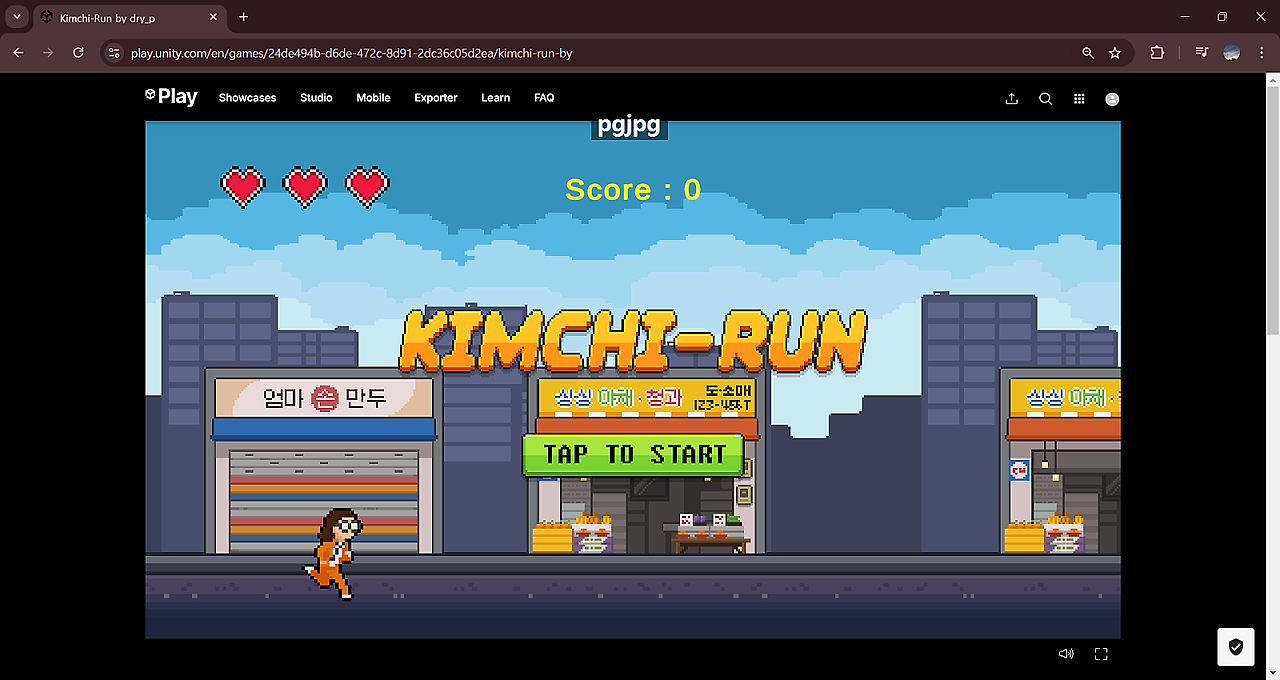 아래는 제작한 Kimchi-Run 게임 화면과 링크.