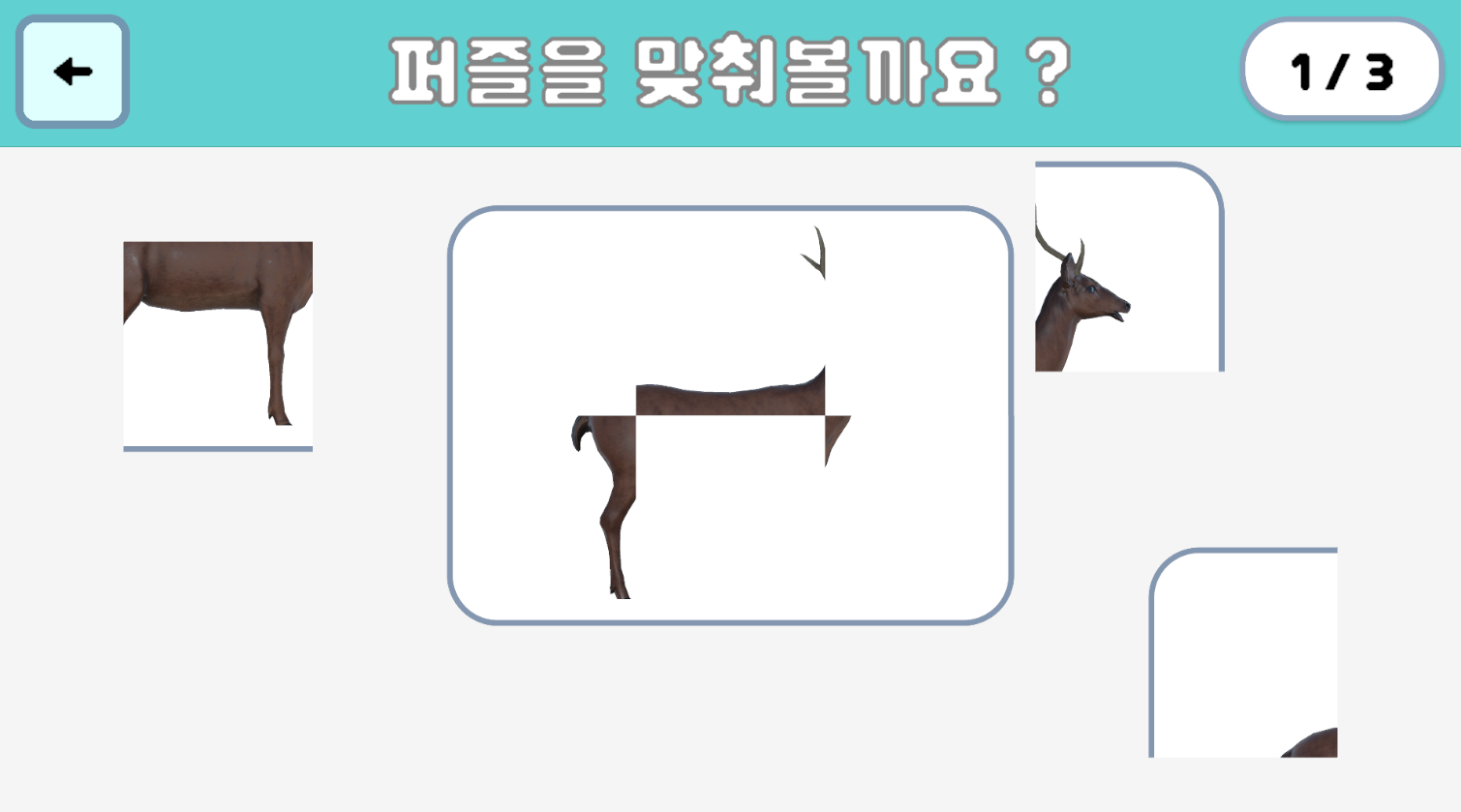 간단하게 퍼즐과 사물 맞추기, 그림자로 사물 유추하기, 상황 대처하기 3가지 컨텐츠를 제작했다.