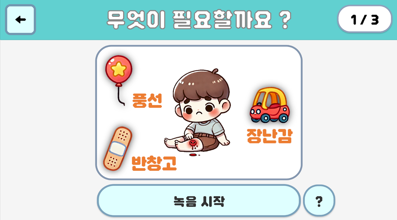 목적은 인지, 언어능력 발달을 위해 음성을 통해서 퀴즈를 맞추고 상호작용할 수 있는 어플을 만드는 것이다.