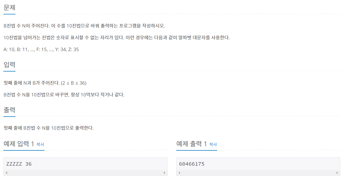먼저 B진법 수 N을 문자열 형태로 입력받자.