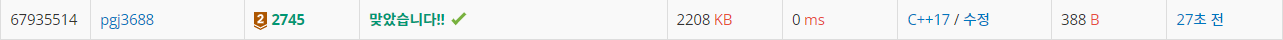 위의 반복이 끝나면 cout 으로 ans 를 출력한다