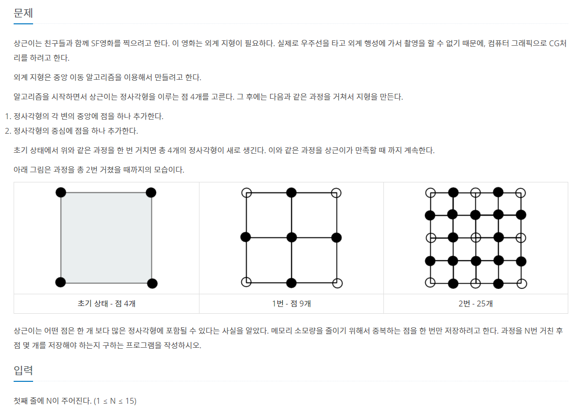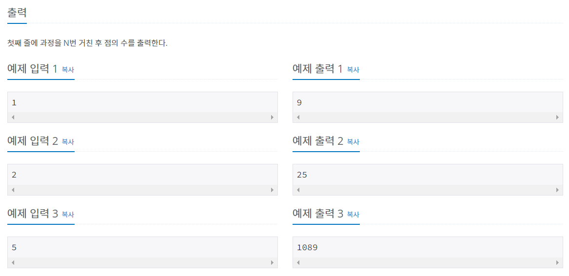 이제 규칙을 알았으니 과정을 반복할 횟수를 입력받아 점의 개수를 계산하자.