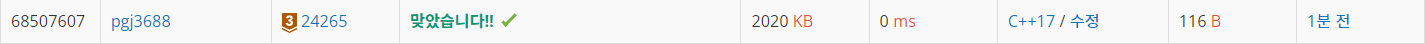 *여기서 주의할 사항, 이번에도 범위를 생각해서 int 형이 아닌 long 또는 long long 형으로 변수를 선언하여 사용하자.